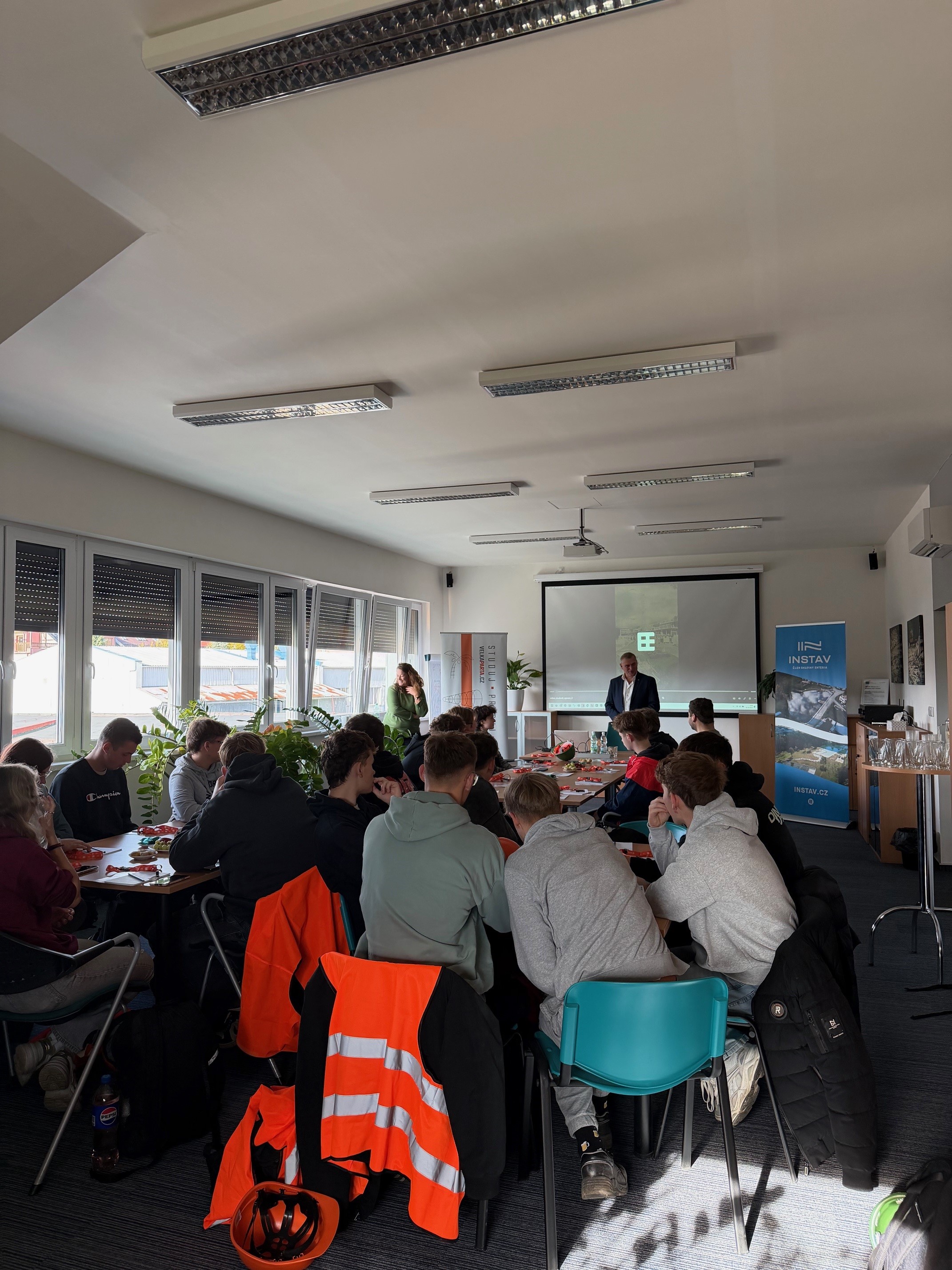 Během exkurze měli studenti možnost diskutovat o tom, co je ve stavebnictví baví, kam by se chtěli profesně posunout, a zároveň se seznámili s fungováním INSTAVu a celého holdingu enteria.